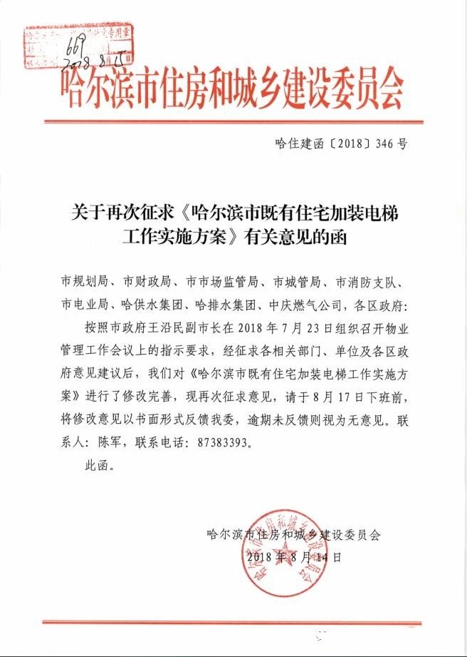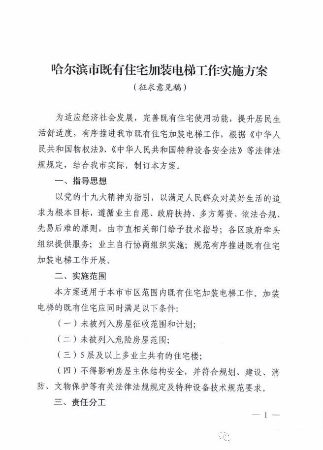 本站获悉,我省哈尔滨市日前由哈尔滨市住房和城乡建设委员会正式颁布了《哈尔滨市既有住宅加装BBV在线官网(中国)工作实施方案》,凡是符合要求的住宅楼,加装BBV在线官网(中国)政府每台补助15万元,如有加装意愿的单元抓紧时间申报。